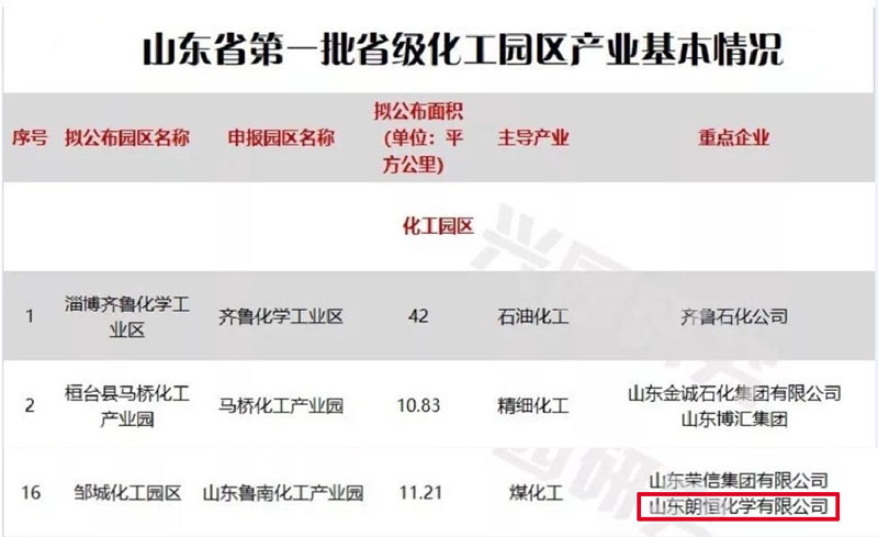 2018年5月16日山東省公布了首批通過(guò)認(rèn)定的33個(gè)園區(qū)以及57家重點(diǎn)化工企業(yè)。其中,山東習(xí)尚喜科技股份有限公司的全資子公司山東朗恒化學(xué)有限公司被列為山東省魯南化工產(chǎn)業(yè)園的重點(diǎn)企業(yè)。