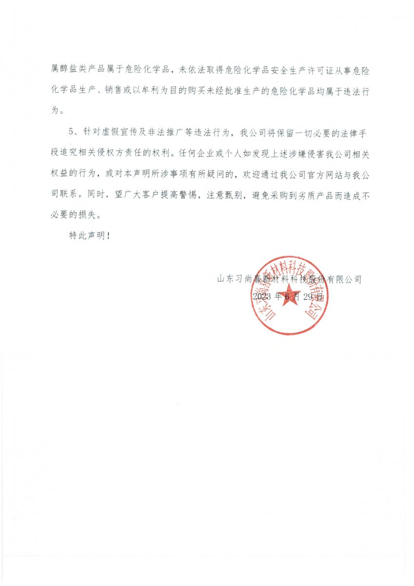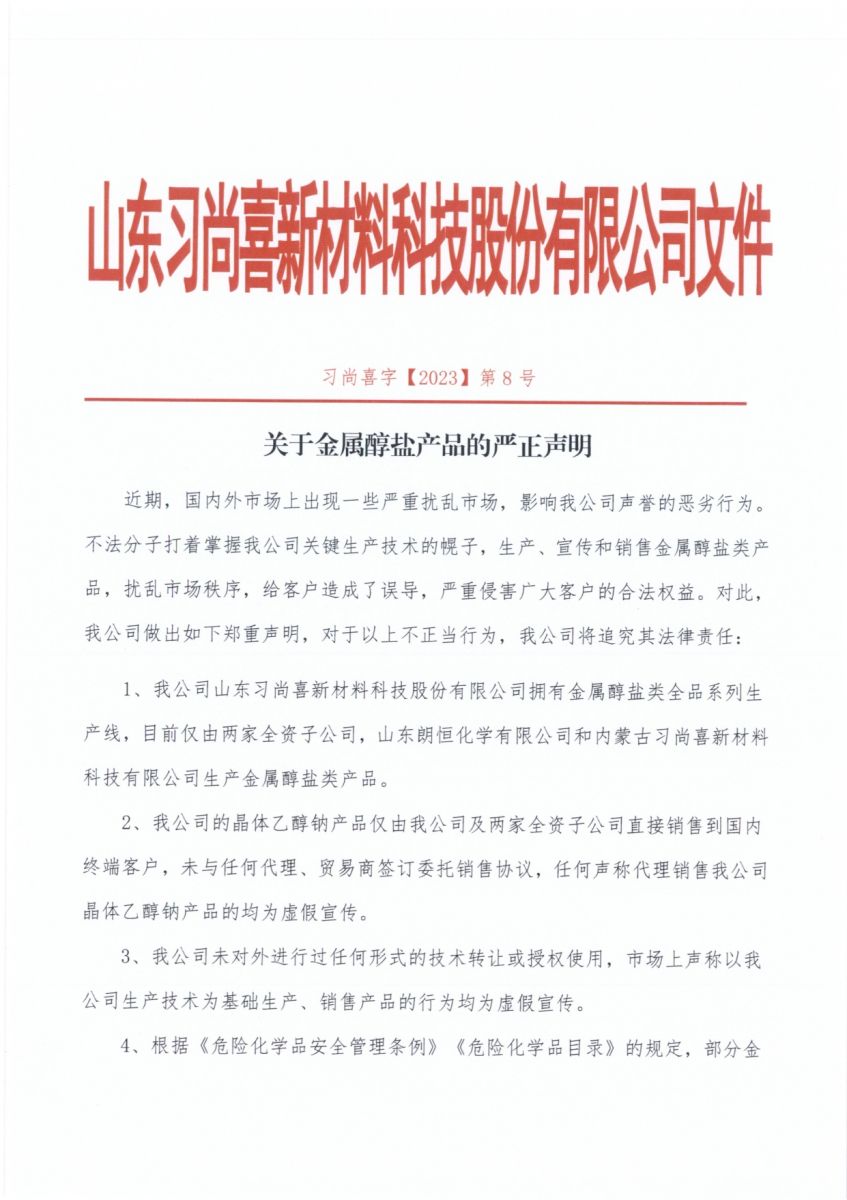 山東習尚喜關于金屬醇鹽產品的嚴正聲明