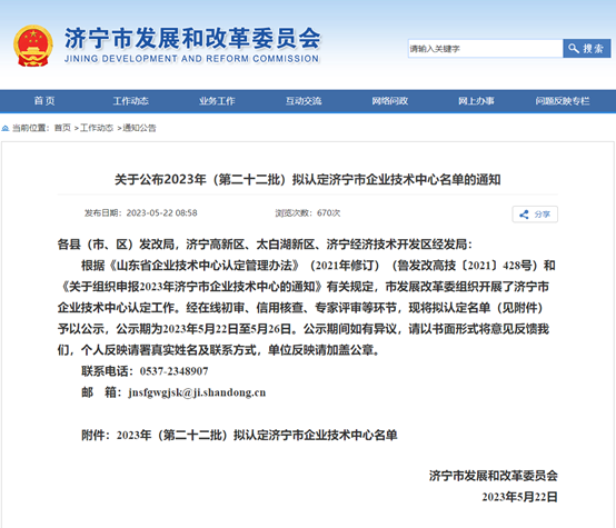 近日,根據《山東省企業技術中心認定管理辦法》(2021年修訂)(魯發改高技〔2021〕428號)和《關于組織申報2023年濟寧市企業技術中心的通知》有關規定,經在線初審、信用核查、專家評審等環節,濟寧市發改委公布了濟寧市2023年第二十二批新認定市級企業技術中心名單,山東朗恒化學有限公司被認定為濟寧市“市級企業技術中心”。